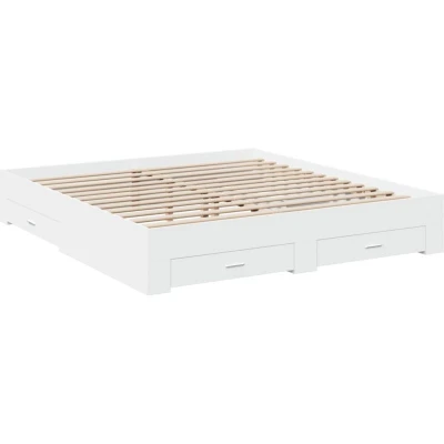 vidaXL White Engineered Wood Super King Bed Frame with Drawers 180x200 cm Contemporary Bedroom Furniture Ample Storage