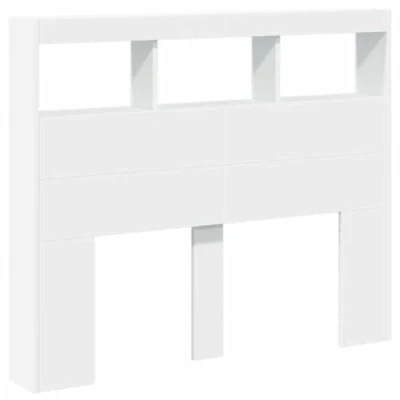 vidaXL White Headboard Cabinet with LED for Bedroom Engineered Wood, Ample Storage, Ambient Lighting, Supportive Backrest 120x17x102 cm