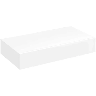 General description This white MDF floating wall display shelf is designed to be the focal point of your home. With an invisible mounting system, it is easy to install and provides an ideal space for storing awards, books, collectibles, ornaments, and more. The shelf features a drawer for small items like keys, DVDs, notepads, pens, and other knick-knacks, making it both functional and stylish. Its sleek design suits any decor, transforming an empty wall into a stunning feature. Technical specifications Colour: White Material: MDF with a matte finish Shelf size: 48 x 25 x 8 cm (W x D x H) Max. load capacity per shelf: 5 kg Installation Invisible mounting system for a clean look Delivery includes screws and wall plugs for easy installation Usage This shelf is perfect for displaying and organizing various items, including books, awards, and decorative pieces, while the drawer provides additional storage for smaller items. Other information