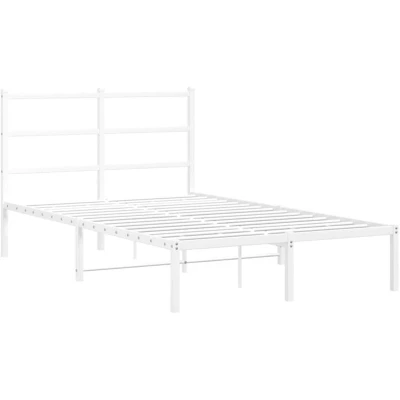 vidaXL White Metal Bed Frame with Headboard 120x190 cm Small Double Size, Powder Coated Steel, Slats & Under Storage