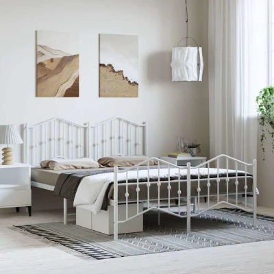 vidaXL White Metal Double Bed Frame with Headboard and Footboard, Robust Powder Coated Steel Construction Supportive Slats Legs