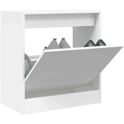 vidaXL White Shoe Cabinet Compact Engineered Wood Storage Organiser, 60x34x63.5cm, with Flip Drawer for Hallway/Entryway