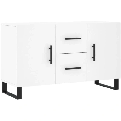 ManoManoGeneral description This modern sideboard, featuring a timeless look, is an excellent addition to your home. It is designed with durability and style in mind, making it a practical choice for any living space. Technical specifications Colour: White Material: Engineered wood, metal Overall dimensions: 100 x 36 x 60 cm (L x W x H) Assembly required: Yes Usage The sideboard cabinet offers ample storage space for keeping your various daily essentials well organized and within easy reach. The top of the cupboard is perfect for displaying decorative items, picture frames, and potted plants. Keep your essentials free from dust by hiding them behind the practical doors. The handles on the doors and drawers make it easy to open the storage cabinet. Other information Warning: To prevent it from being overturned, this product must be used with the provided wall attachment device.