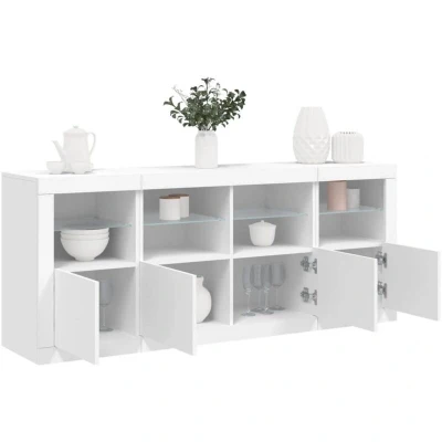 vidaXL White Sideboard with RGB LED Lights 163x37x67 cm Engineered Wood Living Room, Bedroom Storage Cabinet Assembly Required