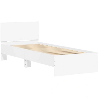 vidaXL White Single Bed Frame with Headboard 90x190 cm Engineered Wood Plywood Slats for Bedroom