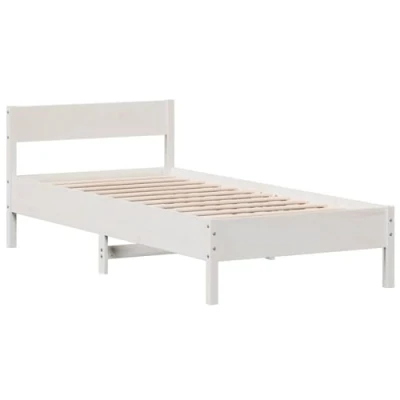 vidaXL White Single Bed Frame with Headboard Solid Pine Wood, 100x200 cm, Modern Bedroom Furniture Plywood Slats, Easy to Assemble