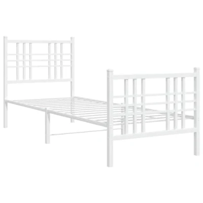 vidaXL White Steel Single Bed Frame 80x200 cm Elegant Metal Design with Headboard/Footboard and Extra Storage Space