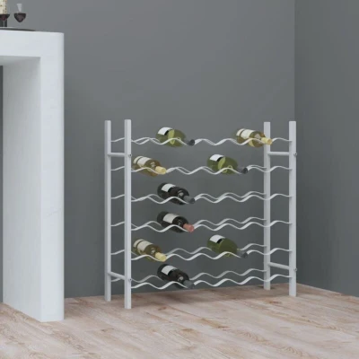ManoManoGeneral description This wine rack is convenient for organizing and storing your favorite wines. It features a modern design, making it a trendy addition to modern kitchens, pantries, and bars. Technical specifications Colour: White Material: Metal Dimensions: 64 x 22 x 58.5 cm (W x D x H) Holds up to 36 bottles of wine (bottles not included) Assembly required: Yes Installation In order to prevent overturning, this product must be used with the wall attachment device provided. Other information