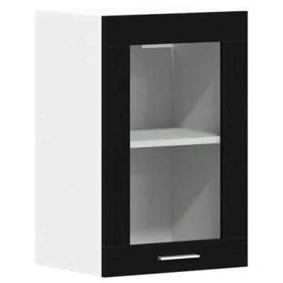 ManoManoGeneral description This hanging glass cabinet is designed to optimize your kitchen space while adding a decorative touch to your home. Its wall-mounted design allows you to maximize floor space and keep your area tidy. Technical specifications Material: Engineered wood, glass Colour: Black oak Overall dimensions: 40 x 31 x 60 cm (W x D x H) Maximum weight capacity (total): 60 kg Assembly required: Yes Installation Screws and plugs for mounting are not included; it is recommended to use screws and plugs suitable for your specific wall type. Consult a professional if unsure about installation. Follow the provided instructions carefully during assembly. Usage The wall-mounted cabinet provides ample storage space for bowls, plates, pots, and other kitchen appliances. Other information