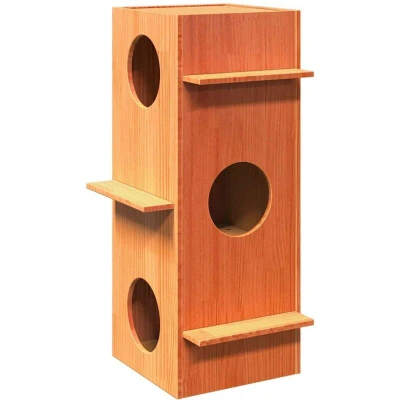 vidaxl Wooden Cat House/Hideaway with Solid Pinewood Frame/Wax Brown Finish/43x43x90 cm/Indoor Furniture for Playing & Relaxing