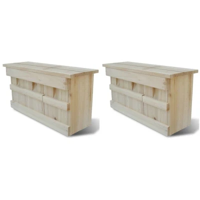 VidaXLThis lovely wooden bird house, constructed from solid wood, is designed for a lucky feathered family to roost! The housing has a natural wood colour, and it will be a perfect ornament as well as a warm and safe bird nest. This bird house has 3 chambers which can accommodate 3 breeding pairs to raise their chicks. Each chamber has a removable front door for easy cleaning. Equipped with metal hangers, the bird house is ready to be mounted in your garden. Delivery includes 2 sparrow houses.