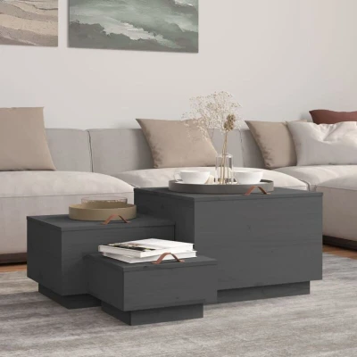 vidaXL Wooden Storage Boxes with Lids 3 pcs in Grey Solid Pine Wood Chests Versatile Use as Coffee Table, Side Table Easy Assembly