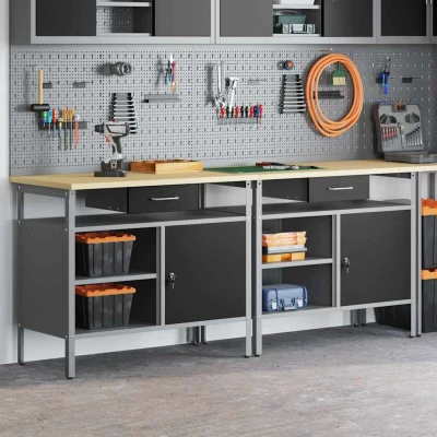 ManoManoThis Steel Work Bench Set serves as a perfect blend of functionality and industrial style, ideal for both professional workshops and home garages. The rectangular bench is crafted to handle heavy-duty tasks, featuring a sleek design with a smooth texture that fits seamlessly into any workspace. With its metal shelving providing ample storage, this bench is suitable for organizing tools and supplies, giving both professionals and hobbyists the organization they need to carry out their tasks efficiently. Imagine this piece as the centerpiece of your workspace, setting a mood that speaks of professionalism, organization, and style. Powder-Coated Steel: Constructed from durable powder-coated steel, this workbench is built to withstand heavy use while resisting scratches and .The finish gives it both a strong and appealing look, making it a robust addition to any workspace where both aesthetics and practicality are needed. Metal Shelves: The included metal shelves offer substantial
