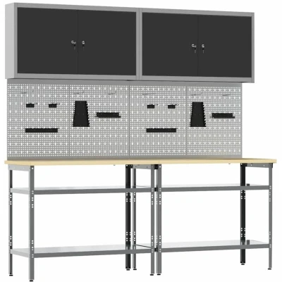 vidaXL Work Bench Set Height Adjustable 8 pcs Grey Powder Coated Steel