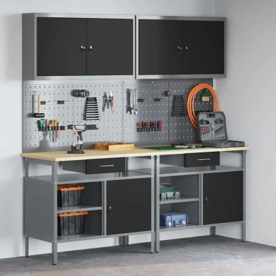 vidaXL Work Bench Set with Drawer 8 pcs Black Powder Coated Steel