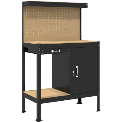 vidaXL Work Benches with Drawer Black 90 x 49 141 cm Engineered Wood