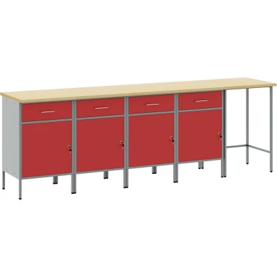 The Durable Work Cabinet Set offers a robust and stylish solution for organizing tools in your workshop. With a modern aesthetic characterized by clean lines and minimal ornamentation, this cabinet set combines functionality and visual appeal, making any workshop look cohesive and professional. Materials: This work cabinet set is constructed from powder-coated steel and engineered wood, providing a sturdy and reliable solution for storing tools. The materials are selected for their strength and durability, ensuring long-term usage in various settings. The powder-coated surface offers resistance to and wear, enhancing the longevity of the cabinet. Included Components: The set features multiple storage compartments and cam locks for secure tool storage. The cam lock mechanism offers easy access while ensuring the safety of your tools, making this set a valuable addition to any workspace. Adjustable foot pegs enhance stability on uneven surfaces, providing a planted feel wherever positioned. Features /Function /Design: Its modern design, focusing on simplicity and functionality, allows it to fit seamlessly into various workshop styles. The cabinet's clean lines and minimal adornments offer a sophisticated look while serving as a practical space for tool organization. Adjustable foot pegs allow customization to the user's preference. Recommended Uses: This cabinet set is designed for indoor use, ideal for workshops where organization and efficiency are essential. Whether for a professional workspace or a home garage, it facilitates an orderly arrangement of tools, improving accessibility and productivity. Care &Maintenance: The assembly must be completed according to the provided instructions, requiring two people and a screwdriver for accuracy. Regular maintenance involves checking the locks and adjusting foot pegs as needed to ensure stability and functionality.