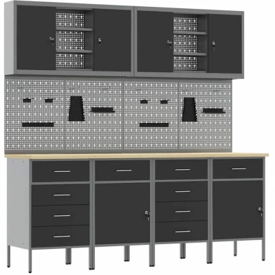 vidaXL Work Cabinet with Drawer 10 pcs Black 200 x 55 cm