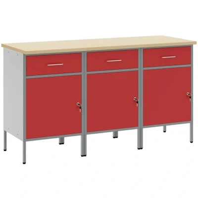 vidaXL Work Cabinet with Drawer 3 pcs Red and Grey 150 x 55 85 cm