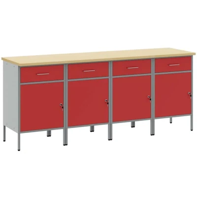 vidaXL Work Cabinet with Drawer 4 pcs Red and Grey 200 x 55 85 cm