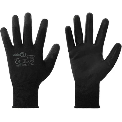 vidaXL Work Gloves 12 pcs Black 10 / XL Polyester