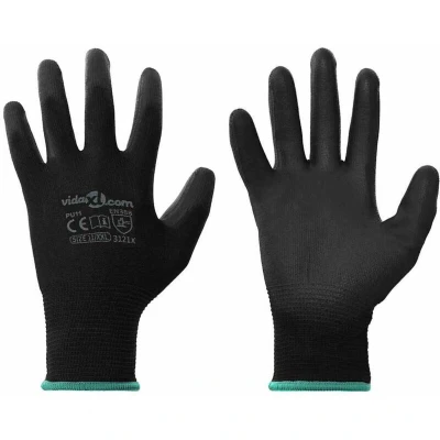 vidaXL Work Gloves 12 pcs Black 11 / XXL Polyester