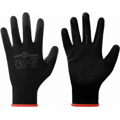 vidaXL Work Gloves 12 pcs Black 7 / S Polyester