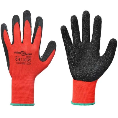 vidaXL Work Gloves 12 pcs Red and Black 11 / XXL Latex Coating