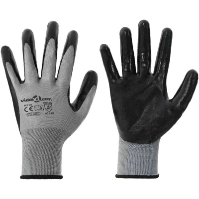 vidaXL Work Gloves 24 pcs Grey and Black 10 / XL Polyester