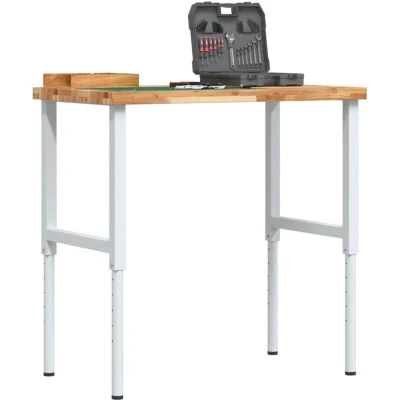 ManoManoGeneral description The workbench is a great helper whether you want to finish repair work or fulfill your DIY dreams! Made from solid acacia wood, it is known for its strength and durability, featuring diverse colors and unique grain patterns that give it an attractive appearance. The powder-coated metal frame ensures stability and resistance to corrosion, making it suitable for both indoor and outdoor use. Technical specifications Overall dimensions: 100 x 60 x (73-99.5) cm (L x W x H) Tabletop material: Solid acacia wood with a natural oil finish Workbench top thickness: 4 cm Table leg color: Grey Table leg material: Powder-coated metal Table leg size: 55 x (69-95.5) cm (W x H) Recommended screw size (not included): 5 x 40 mm (Diameter x L), max. 16 pcs Height adjustable Assembly required: Yes Installation This tabletop has no predrilled holes; screws are not included. Therefore, holes have to be predrilled, and screws must be purchased before assembling this work table. Usage The
