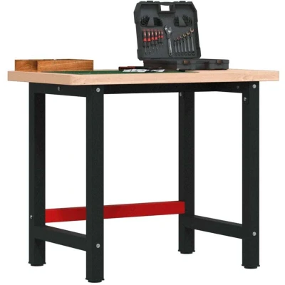 ManoManoGeneral description The workbench is an excellent assistant for completing repair tasks or pursuing your DIY projects. Made from solid beech wood, it features a robust and durable design, complemented by a stable powder-coated metal frame that ensures long-lasting performance. Technical specifications Overall dimensions: 100 x 60 x 83 cm (L x W x H) Tabletop material: Solid beech wood (untreated) Workbench top thickness: 4 cm Table leg material: Powder-coated metal Table leg dimensions: 80 x 57 x 79 cm (L x W x H) Recommended screw size (not included): 5 x 75 mm (Diameter x L), max. 16 pcs Installation Assembly required: Yes This tabletop has no predrilled holes; screws are not included. Holes must be predrilled, and screws must be purchased separately before assembling the work table. Usage The workbench can be utilized as a tool bench or a work desk, depending on your needs. Its simple and clean design makes it a versatile addition to any workspace. Other information Each item is