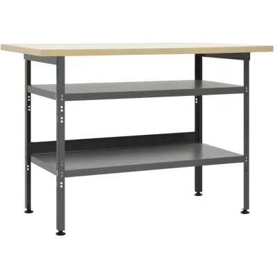 VidaXLThis heavy-duty workbench, standing out with ample storage space and 300 kg loading capacity is an essential addition to your workshop and garage. The large and sturdy tabletop provides a stable platform for all your repair works. The workbench has 2 large shelves to comfortably accommodate drills, cable drums, grinders and other tools. Additionally, the feet are height-adjustable. You can put the workstation wherever you need it, and it will stand firmly even on uneven ground. This workstation is crafted from premium steel and engineered wood, making it extra sturdy, durable and easy to clean. Assembly is easy. The workbench is a great helper whether you want to finish repair works or fulfil your DIY dreams!