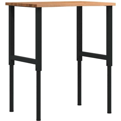 ManoManoGeneral description The workbench is an excellent assistant for completing repair tasks or pursuing your DIY projects. Its robust construction and versatile design make it suitable for various uses, whether as a tool bench or a work desk. Technical specifications Overall dimensions: 80 x 60 x (71.5-98) cm (L x W x H) Tabletop colour: Light brown Tabletop material: Solid oak wood, fine sanded with a light varnish Work bench top thickness: 2.5 cm Table leg colour: Black Table leg material: Powder-coated metal Table leg size: 55 x (69-95.5) cm (W x H) Recommended screw size (not included): 5 x 25 mm (Diameter x L), max. 16 pcs Assembly required: Yes Compatibility and accessories Delivery contains: 1 x Tabletop, 1 x Table leg Installation This tabletop has no predrilled holes; screws are not included. Holes must be predrilled, and screws must be purchased before assembling the work table. It is recommended to use a screwdriver instead of an electric drill to avoid wood cracking when