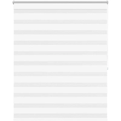ManoManoGeneral description This elegant roller blind is a smart choice for the modern home, offering a stylish alternative to traditional Venetian or vertical blinds. The blind features two alternating layers of opaque and transparent fabric, allowing you to create a unique light filtering effect by adjusting the position of the blind. It is made of 100% polyester and comes with a white pull chain that is easy to install and operate. Technical specifications Blind Size: 120 x 175 cm (Note: Width refers to the width of the top frame; fabric is 3 cm narrower than the top frame) Blind Colour: White Fabric Material: 100% polyester Metal Shaft Diameter: 18 mm Chain Length: 2 m Chain Colour: White SKU: 240214 Installation Delivery includes: 1 x 120 cm top aluminum rail with 117 x 175 cm zebra print fabric, 1 x 120 cm top rail, 1 x 120 cm heavy bottom rail, 2 x pothook, 2 x bracket, 1 x chain holder, 2 x gasket, and 1 x ball chain. Other information WARNING: Young children can be strangled by loops