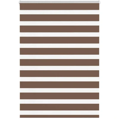 ManoManoGeneral description Elevate your room's style and functionality with this zebra blind, offering privacy and elegance. Made from 100% polyester, the zebra blind is built to last and resist wear and tear. The two-layer design features alternating transparent and opaque fabric panels, allowing for seamless adjustment of the room's lighting from translucent to fully darkened. Technical specifications Colour: Brown Material: 100% polyester Top rail material: Aluminium Total height: 150 cm Total width: 95 cm Fabric width: 90.9 cm (tolerance ± 4 mm) Opaque strips height: 7.5 cm Transparent strips height: 5 cm Window frame thickness range: 0.5-2.5 cm Assembly required: Yes SKU: 4014338 Compatibility and accessories Two assembly methods: with screws or without drilling using clamping brackets Mounting accessories included Chain connector for height adjustment Installation You can attach the zebra roller blind to the wall or window depending on your needs. Assembly is required. Usage The roller