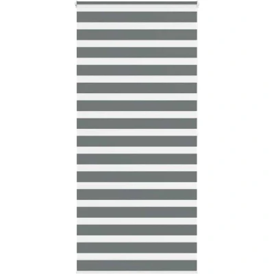 Elevate your room's style and functionality with this zebra blind, offering privacy and elegance. Durable and low maintenance: Made from 100% polyester, the zebra blind is built to last and resist wear and tear. They are also easy to clean, typically requiring light dusting or wiping with a damp cloth.Privacy and sun protection: The two-layer design features alternating transparent and opaque fabric panels. The light can be easily controlled using the chain hoist, allowing for seamless adjustment of the room's lighting from translucent to fully darkened.Two assembly ways: You can attach the zebra roller blind to the wall or window with screws or without drilling using clamping brackets, depending on your needs.Elegant design: Thanks to its sleek and modern pattern design, this zebra roller blind effortlessly complements a variety of room decor. You can use it in the living room, bedroom, office, and so on.Child safety and adjustability: The roller blind includes a chain connector that makes it easy to adjust the height according to your needs, and it also has a cord clip to add child safety. Warning:Keep cords out of the reach of young children. Cords may become wrapped around a child’s neck. Good to know:Before buying blinds, start by measuring your window glass. Just a friendly tip: the fabric is a bit narrower than the total width, including the brackets.To make sure your new blinds provide complete coverage, just add 4,1 cm to the width of the window glass when calculating what to order.