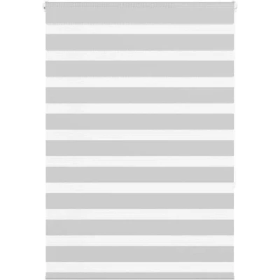 ManoManoGeneral description Elevate your room's style and functionality with this light grey zebra blind, offering both privacy and elegance. Made from 100% polyester, it is durable, low maintenance, and easy to clean, requiring only light dusting or wiping with a damp cloth. Technical specifications Colour: Light grey Material: 100% polyester Top rail material: Aluminium Total height: 150 cm Total width: 95 cm Fabric width: 90.9 cm (tolerance ± 4 mm) Opaque strips height: 7.5 cm Transparent strips height: 5 cm Window frame thickness range: 0.5-2.5 cm Assembly required: Yes Compatibility and accessories Mounting accessories included Two assembly methods: with screws or without drilling using clamping brackets Installation The zebra roller blind can be attached to the wall or window using screws or clamping brackets, depending on your preference. Usage The two-layer design features alternating transparent and opaque fabric panels, allowing you to control the light easily with the chain hoist.