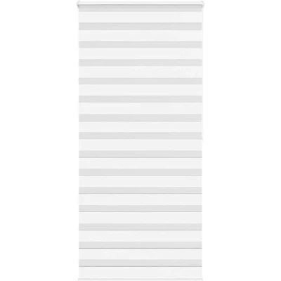 ManoManoGeneral description Elevate your room's style and functionality with this zebra roller blind, offering privacy and elegance. Made from 100% polyester, the zebra blind is durable, low maintenance, and easy to clean, typically requiring light dusting or wiping with a damp cloth. The two-layer design features alternating transparent and opaque fabric panels, allowing for seamless adjustment of the room's lighting from translucent to fully darkened. Technical specifications Colour: White Material: 100% polyester Top rail material: Aluminium Total height: 200 cm Total width: 100 cm Fabric width: 95.9 cm (tolerance ±4mm) Opaque strips height: 7.5 cm Transparent strips height: 5 cm Window frame thickness range: 0.5-2.5 cm Assembly required: Yes Compatibility and accessories Two assembly methods: with screws or without drilling using clamping brackets Mounting accessories included Chain connector for height adjustment Usage The zebra blind can be used in various settings such as the living