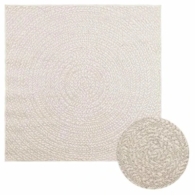 vidaXL ZIZUR Cream Jute Look Rug Polypropylene 120x120 cm Indoor Outdoor Carpet for Patio/Garden/Decor