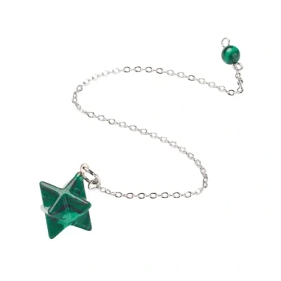 VIE Chakra Merkaba Star Pendulum, Malachite (Stabilised) with Brass Chains, One