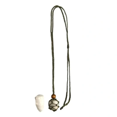 VIE Green Macrame Necklace, White Agate Tumbled, with Rough Cut