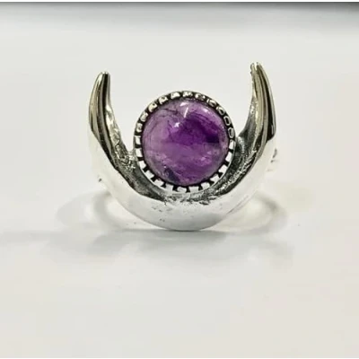 VIE Halo Half Moon Ring, Amethyst