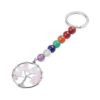 VIE Naturals Chakra Jewelry, Mixed Gemstone Tree of Life Keychain