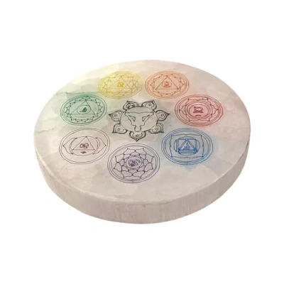 VIE Selenite Charging Plate, Round, Etched, Design #02, 8cm