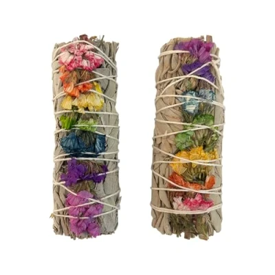 VIE Smudge Stick, White Sage and 7 Chakra Flowers 4", Pack of 2