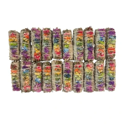VIE Smudge Stick, White Sage and 7 Chakra Flowers 4", Pack of 20
