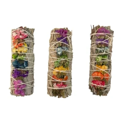 VIE Smudge Stick, White Sage and 7 Chakra Flowers 4", Pack of 3