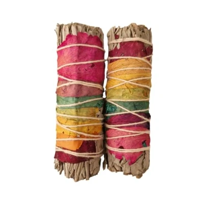 VIE Smudge Stick, White Sage and 7 Chakra Petals 4", Pack of 2