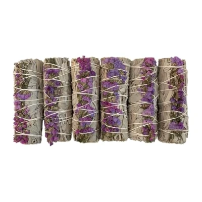 VIE Smudge Stick, White Sage and Purple Sinuata 4", Pack of 6