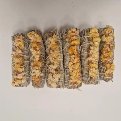 FLORAL ELEGANCE - Features stunning dried flowers that elevate any ritual or setting. UPLIFTING FRAGRANCE - Emits a gentle floral aroma that soothes and refreshes. HANDCRAFTED CHARM - Lovingly tied for an artisanal and effective product. POSITIVE ENERGY - Enhances the atmosphere by inviting uplifting vibrations. GIFT-READY - A beautiful and thoughtful gift for spiritual and mindful living.